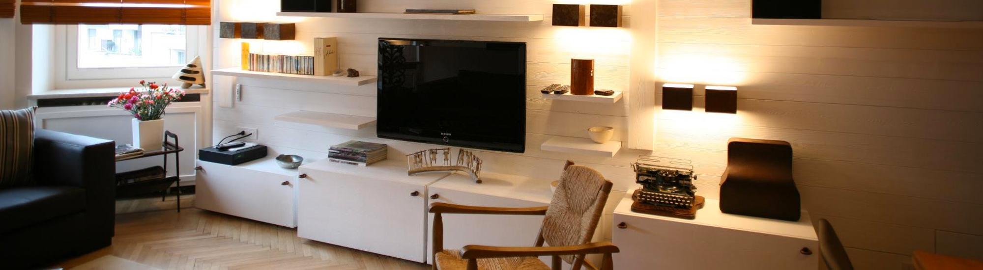 Un alloggio all’interno di una elegante palazzina del primo Novecento dalle caratteristiche prettamente tradizionali e borghesi, ma con alcuni particolari che hanno fatto da spunto per pensare di sovvertirne le peculiarità e trasformare lo spazio evocando qualcosa di “lontano”, decontestualizzando volutamente i significati: legni sbiancati, rivestimenti inediti, pelli usate, materiali e immagini in contrasto, per un’atmosfera d’evasione